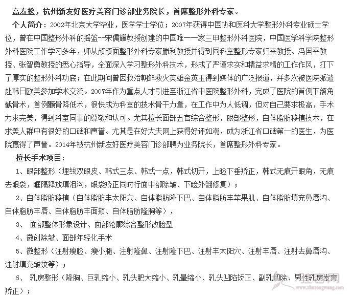 当前位置: 整形医院 > 杭州新友好医疗美容医院 > 高寿松