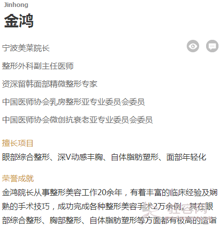 当前位置: 整形医院 > 宁波美莱医疗美容专科门诊部 > 金鸿