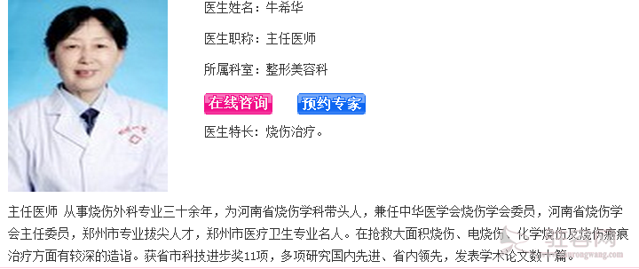 当前位置: 整形医院 > 郑州市第一人民医院整形外科 > 牛希华